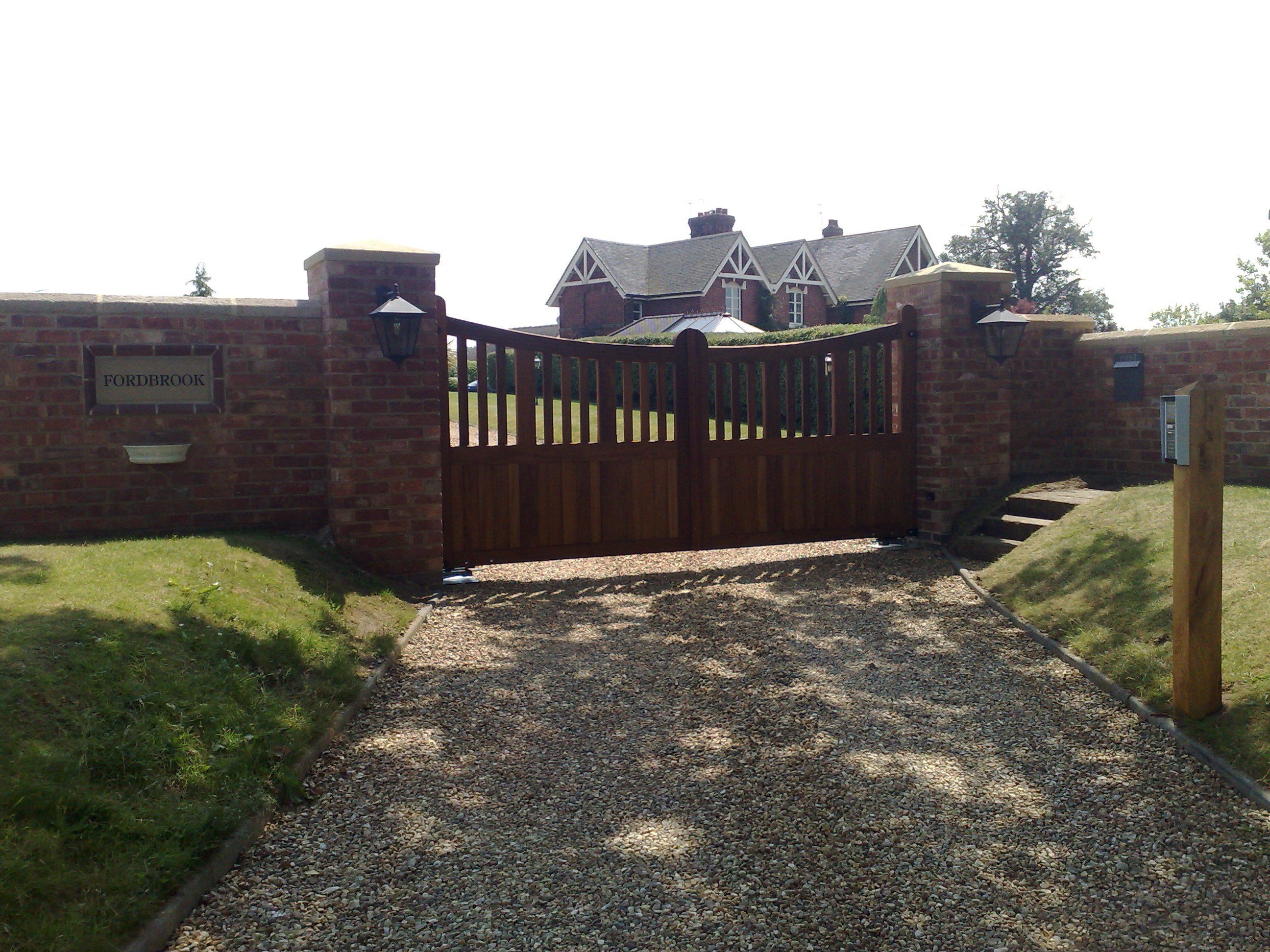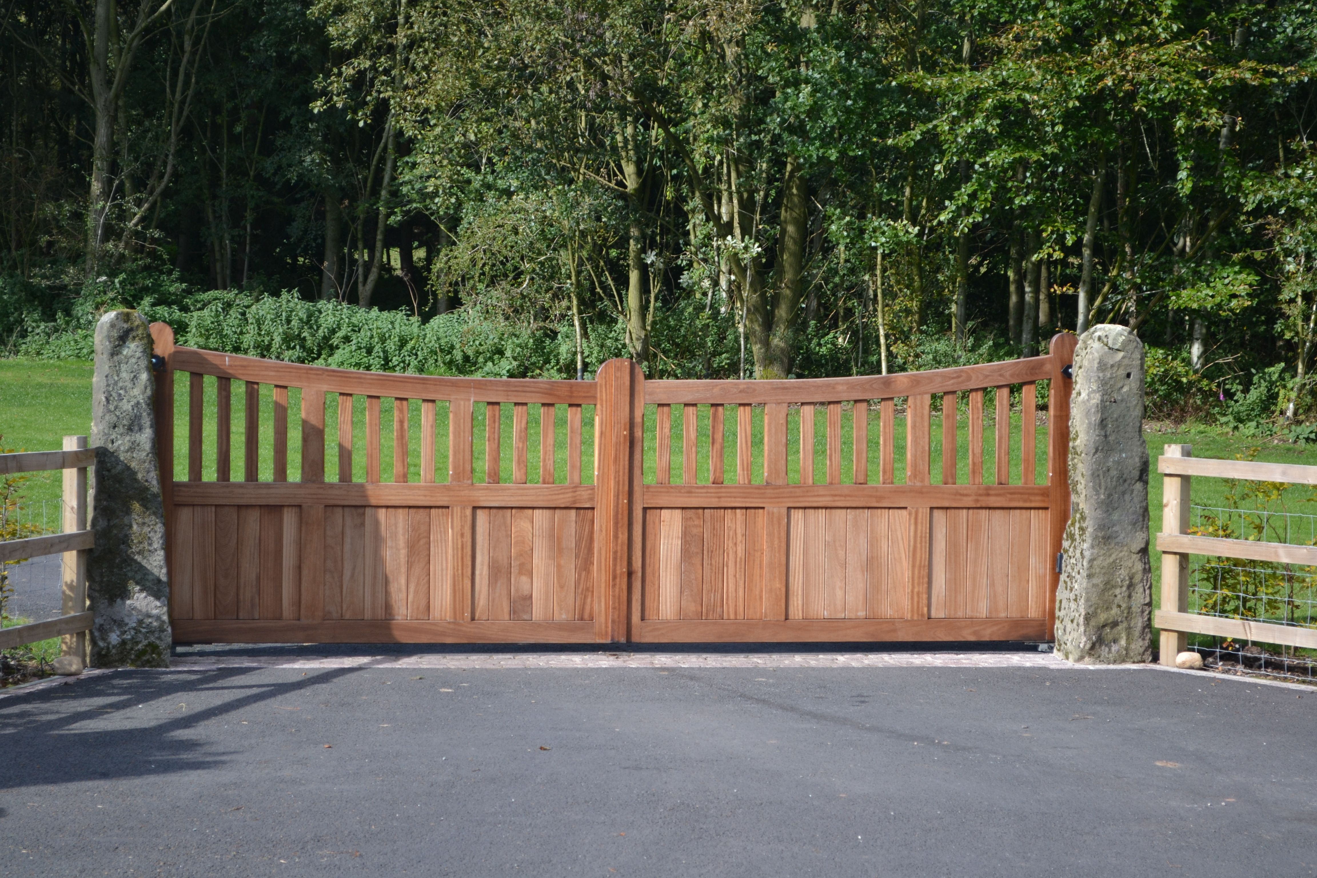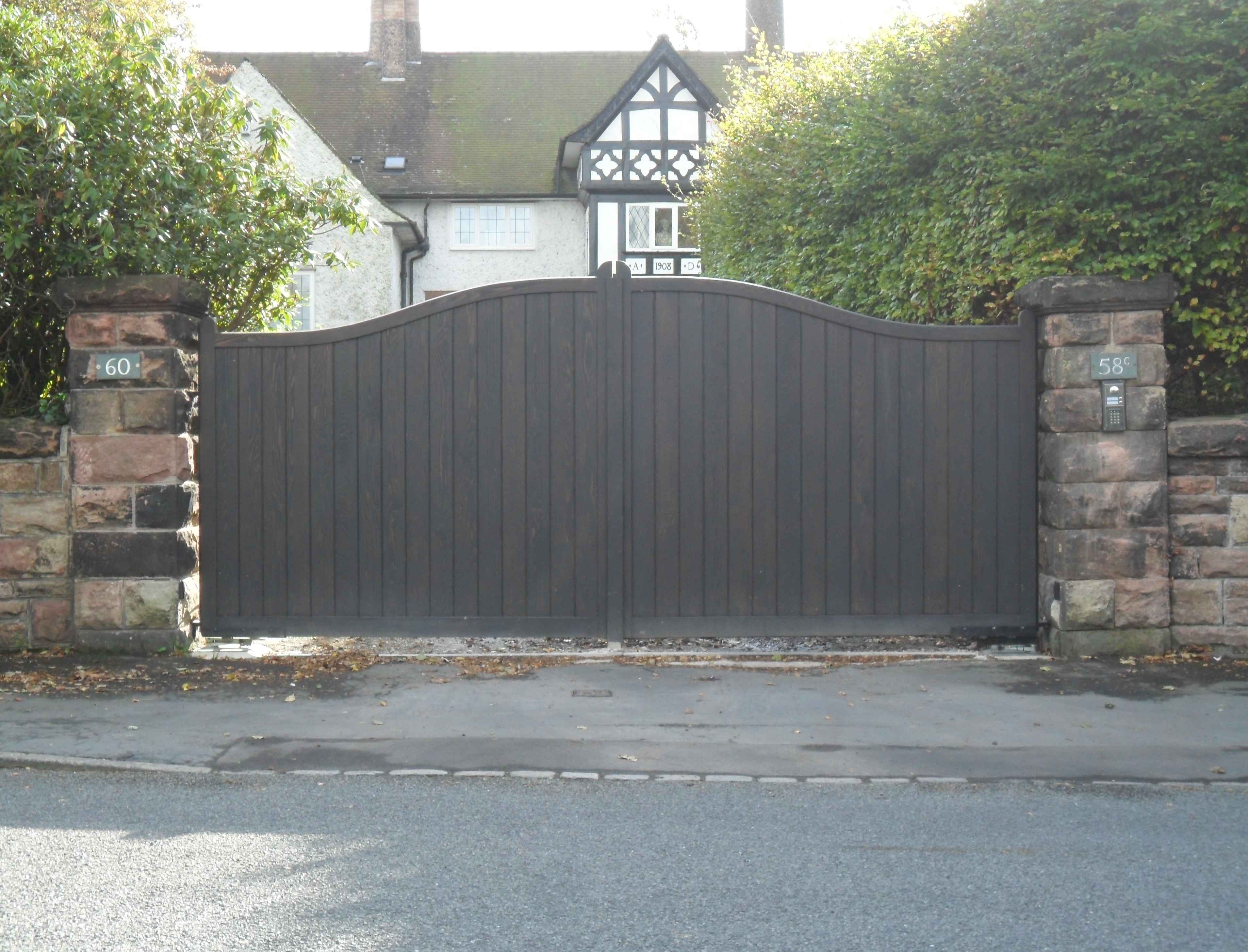 The Chesterfield gate is very stylish fusion of hardwood and wrought iron style infill's. This particular installation is not automated but the design is very suitable for gate automation