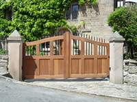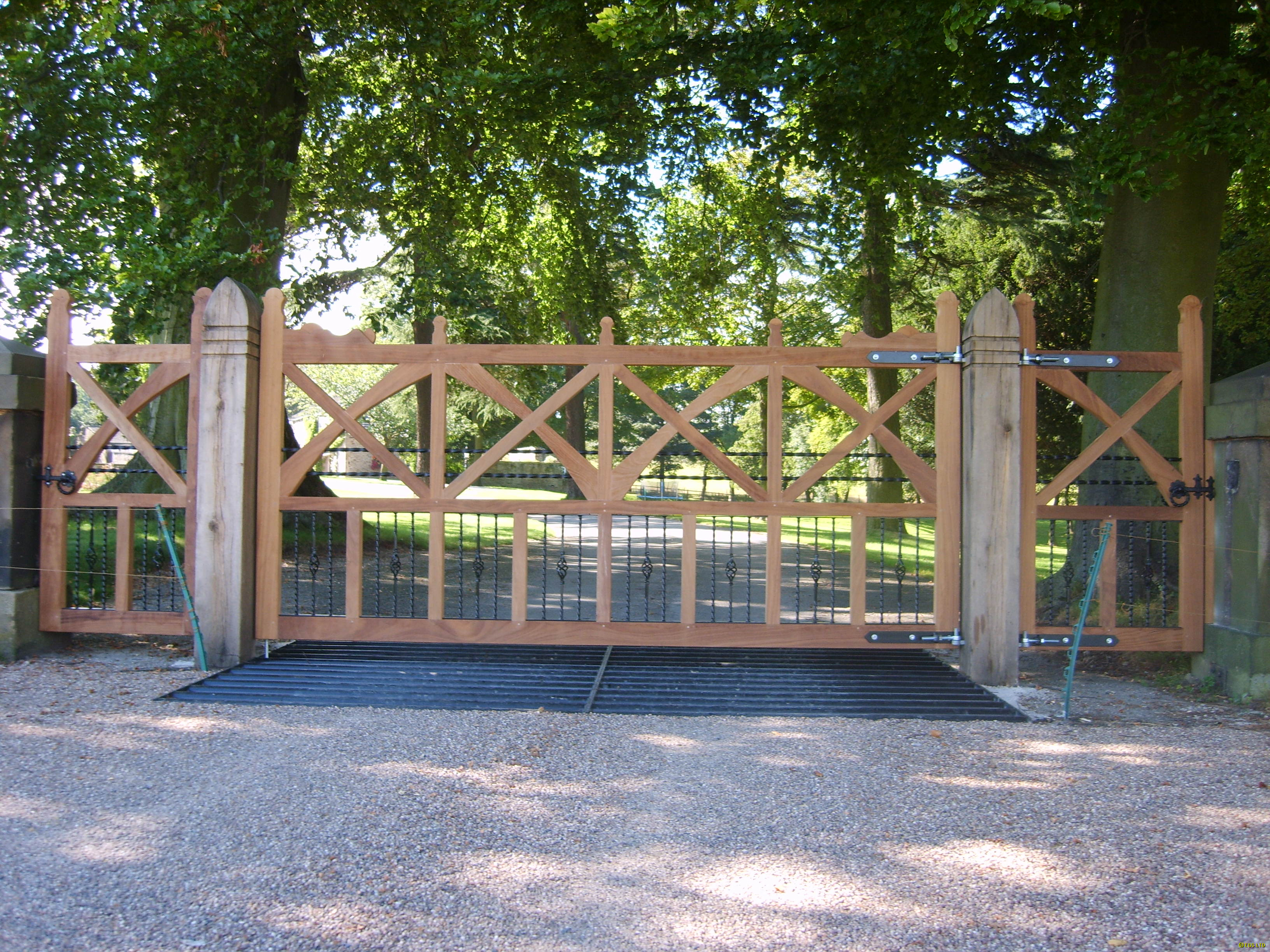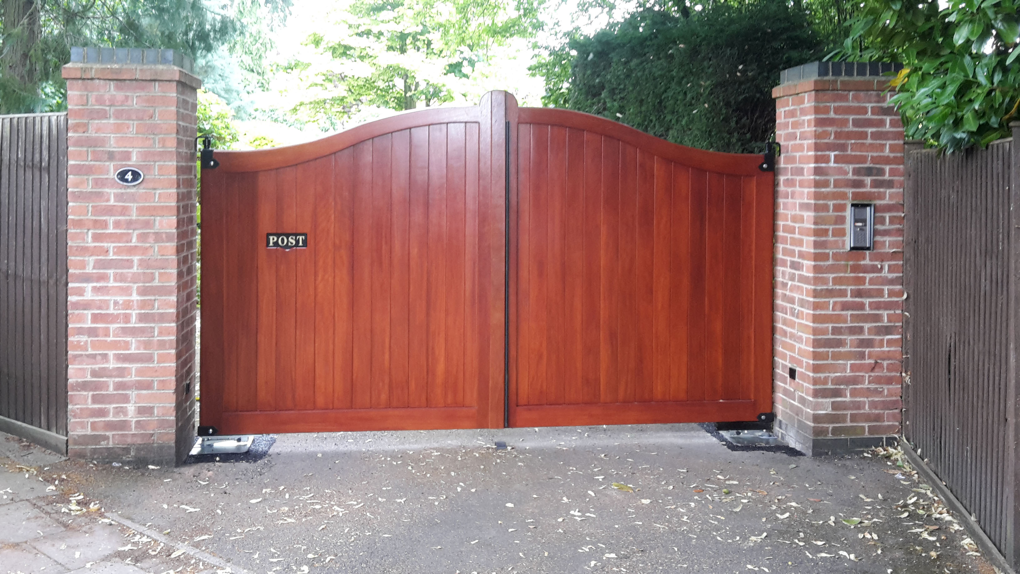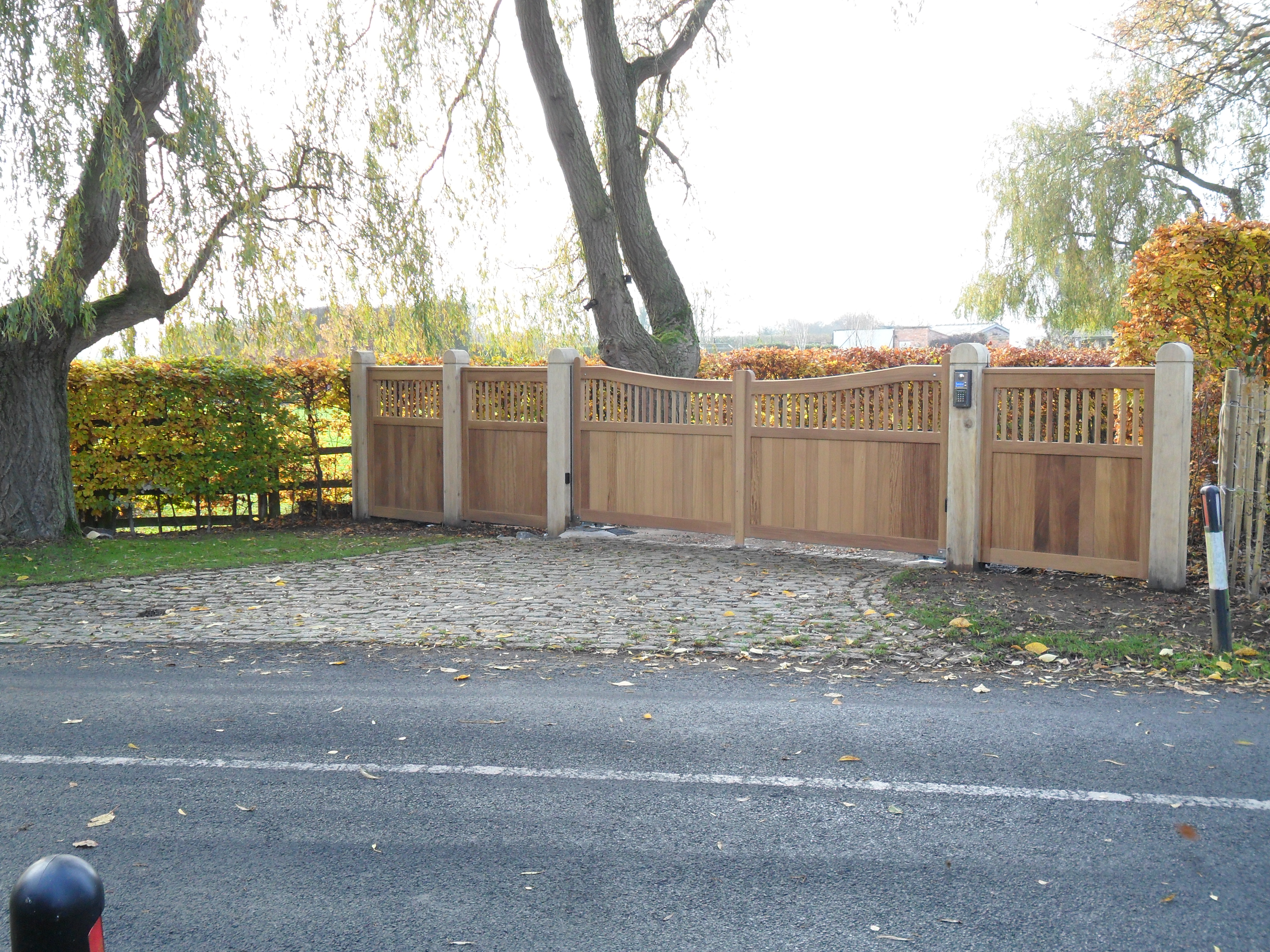 The Chesterfield gate is very stylish fusion of hardwood and wrought iron style infill's. This particular installation is not automated but the design is very suitable for gate automation